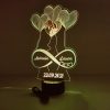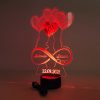 Una lampada LED personalizzata in plexiglass, perfetta per celebrare un amore unico. Incidiamo i vostri nomi e la vostra data speciale su un design elegante a forma di cuore, illuminato da una base a LED disponibile in diversi colori. Un’idea regalo originale per anniversari, matrimoni e San Valentino.