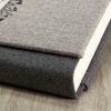 Copertina realizzata con inserto in legno ANTRACITE con foto stampata e con logo fondo bianco • Materiali: Fronte NEW KENYA TAUPE; Dorso e Retro ANTHRACITE KENYA; Logo n° 23; Var. 80